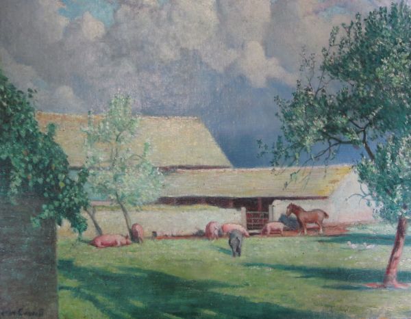 Farm scene with horse and pigs