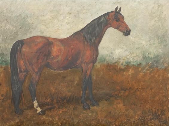 Chestnut horse in landscape