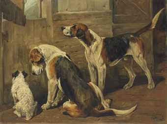 Waiting for the Hunt: a Terrier and Two Hounds
