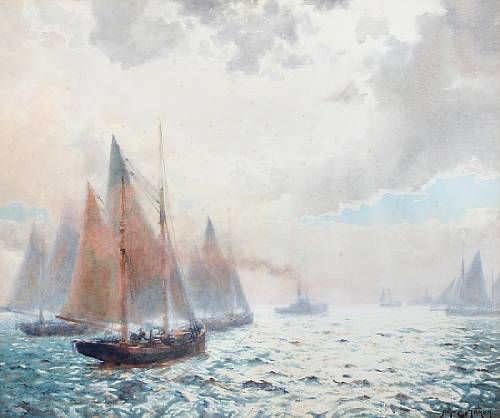 | 'On the Mersey', a fleet of fishing boats in Liverpool bay | |
