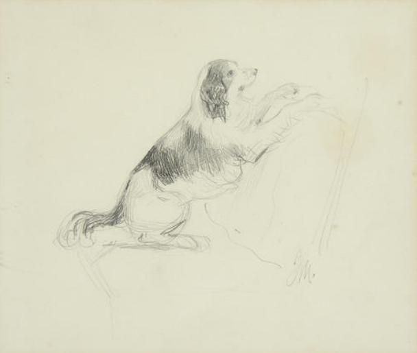 Study of a dog; Figures shooting rooks