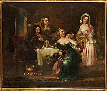 INTERIÖR MED FESTANDE SÄLLSKAP