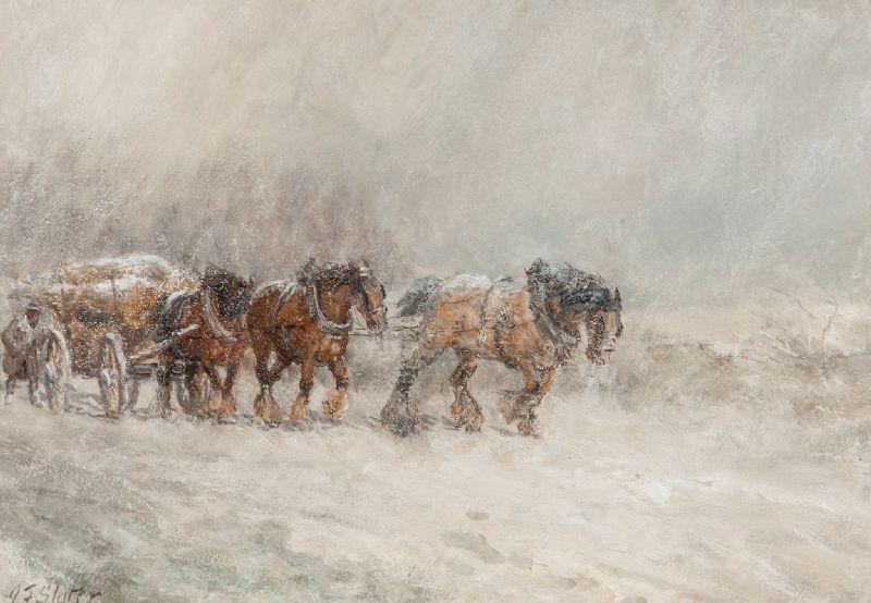 Horses and cart in a snowstorm
