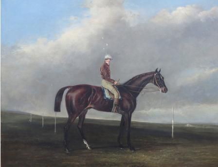 | The Thoroughbred Racehorse Nutwith, Winner of the Great St. Leger Stakes at Doncaster in 1843, with Jockey Up | |