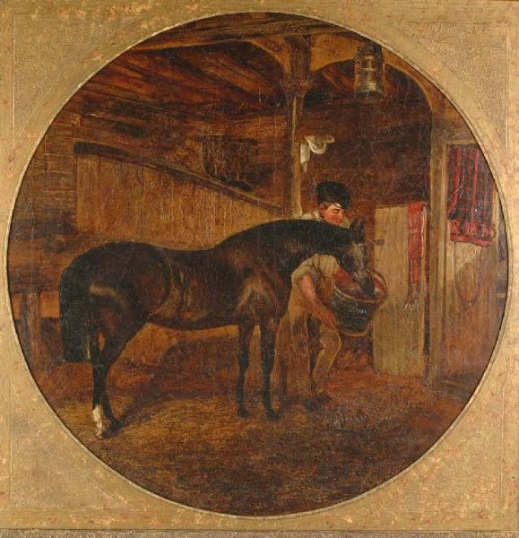 STABLE LAD AND A CHESTNUT HORSE IN A STABLE