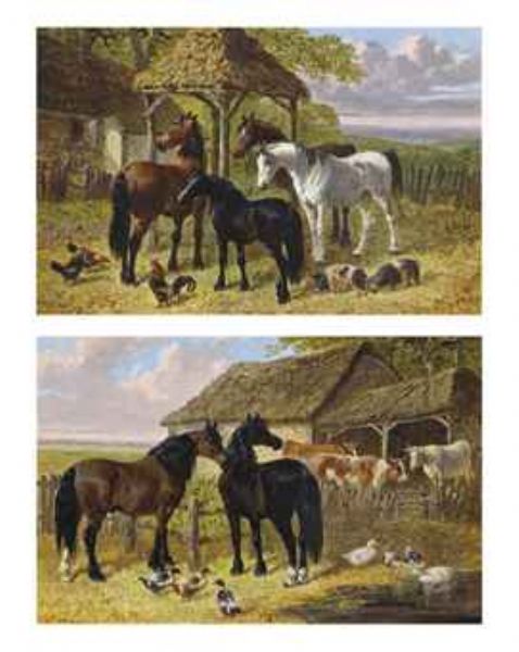 | By the duck pond; and Horses, piglets and chickens in the farmyard | |