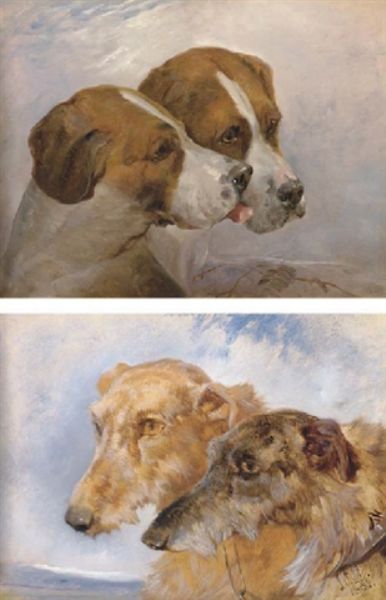 The Heads of Two Foxhounds; and the Heads of Two Deerhounds