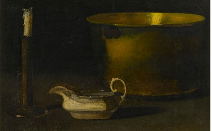 | STILL LIFE WITH CANDLESTICK, BRASS, SEWING KETTLE AND SAUCE BOAT | |
