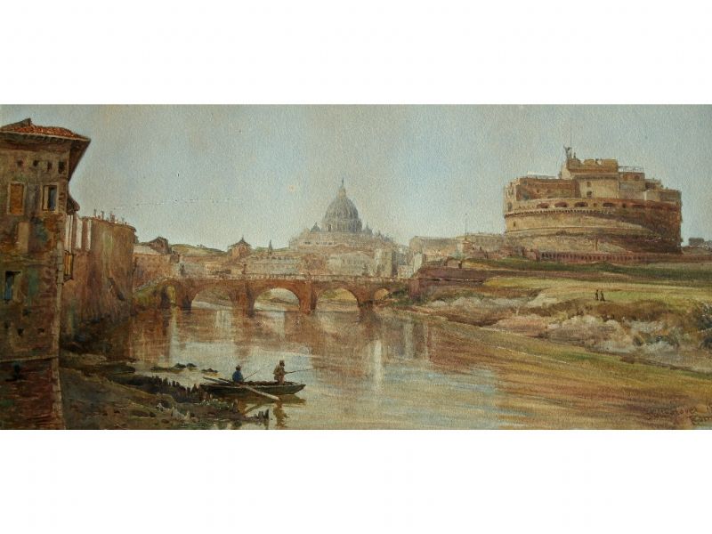 | VIEW ON THE TIBER WITH A VIEW OF THE CASTEL SANT'ANGELO AND ST. PETER'S, ROME | |
