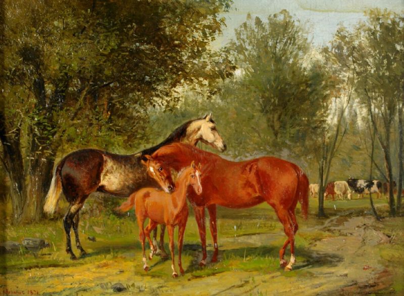 Hästar i skogsbryn