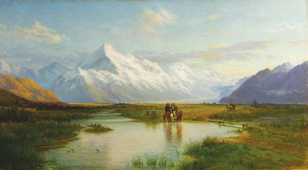 Mt. Cook from Tasman Valley with Horses & Coaches