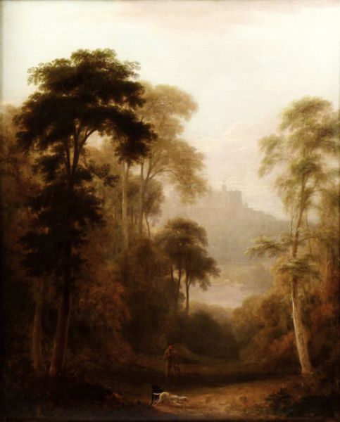 | A MAN HUNTING WITH TWO DOGS, WINDSOR CASTLE IN THE BACKGROUND | |