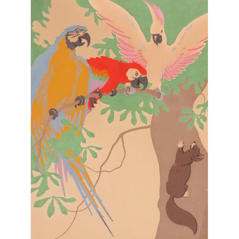 | Parrots; Summer flowers in a blue vase and fruit | |