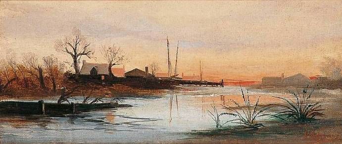 BORD DE L’ESCAUT AU SOLEIL COUCHANT