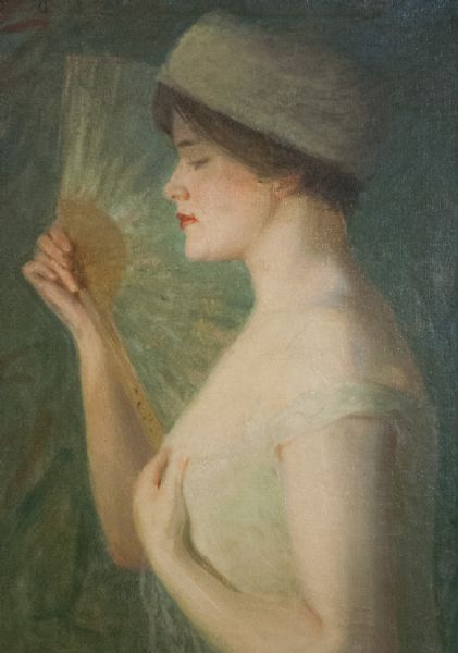 Woman in profile with a fan