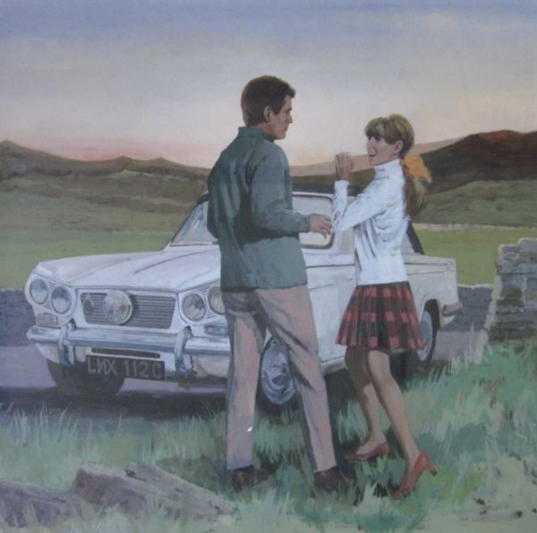 A young couple by a Triumph Herald
