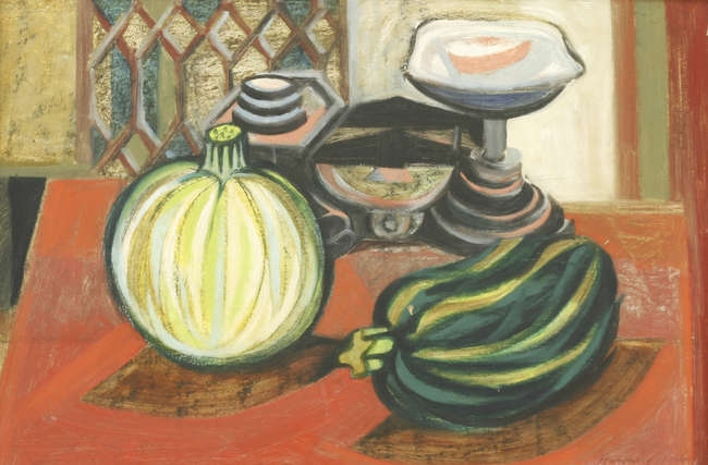 | STILL LIFE OF A MARROWS AND A SET OF SCALES | |