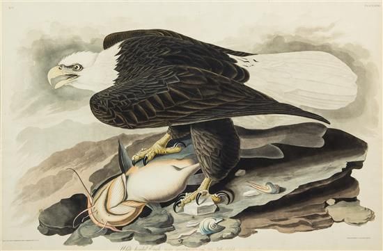 | White-headed Eagle, Falco Leucocephalus. Linn, Male. Yellow Cat-fish, plate XXXI, no. 7 (from Birds of America, 1826-1839) | |