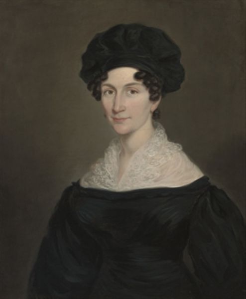 | Portrait of a lady traditionally identified as Mary Penn, half-length, in a black dress and lace fichou, wearing a black hat | |