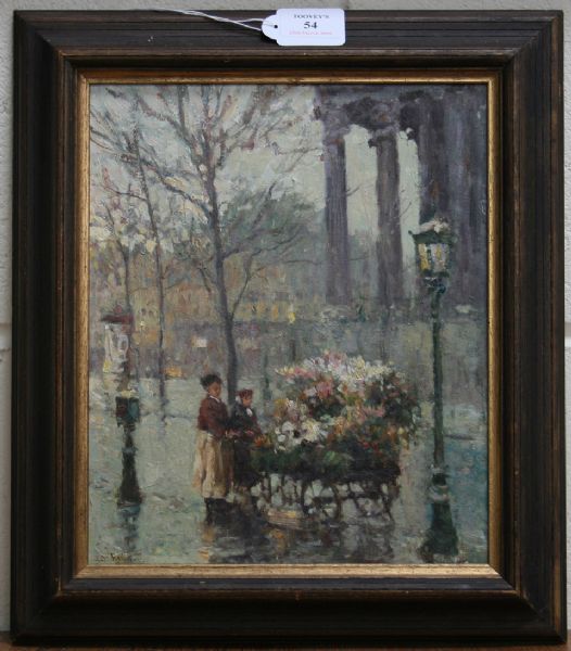 View of a Flower Seller in a London Square, possibly St Martin-in-the-Fields beyond