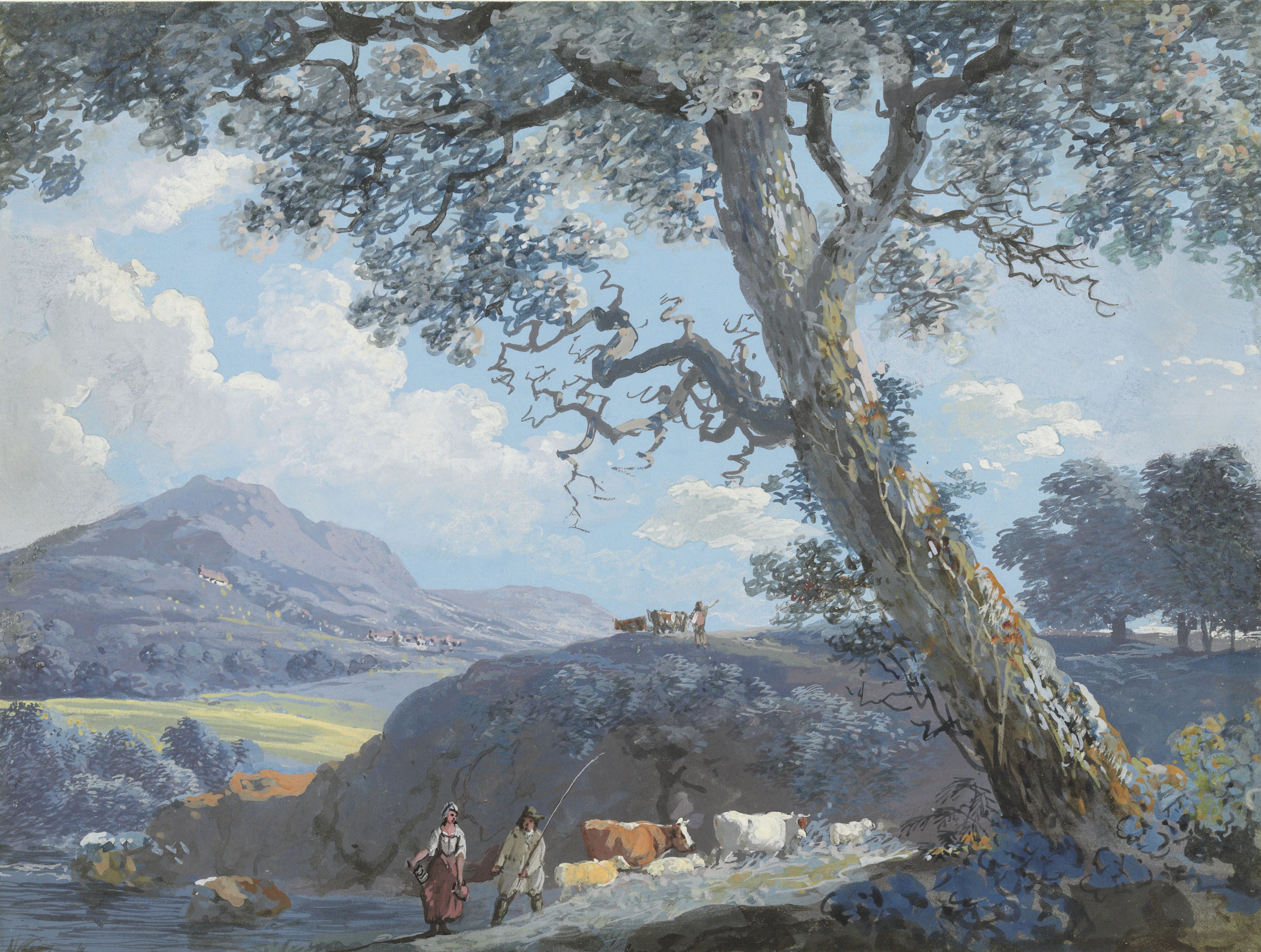 | Rustic figures with cattle in an extensive landscape, probably in Ireland | |