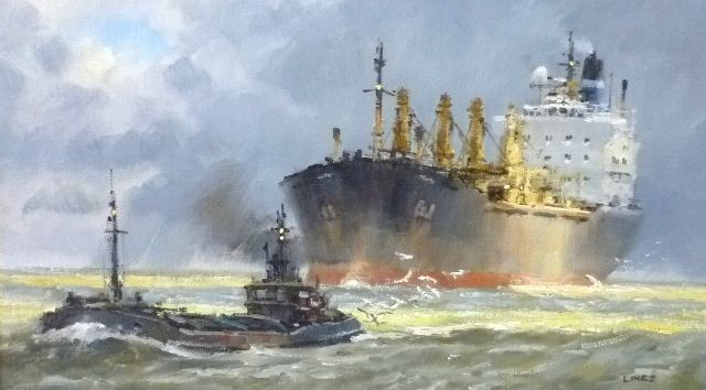 Estuary Traffic, a large tanker under tow with a tug in the foreground