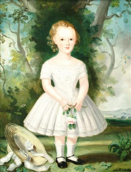 | Portrait of a child Full length, standing in a landscape holding a rose | |