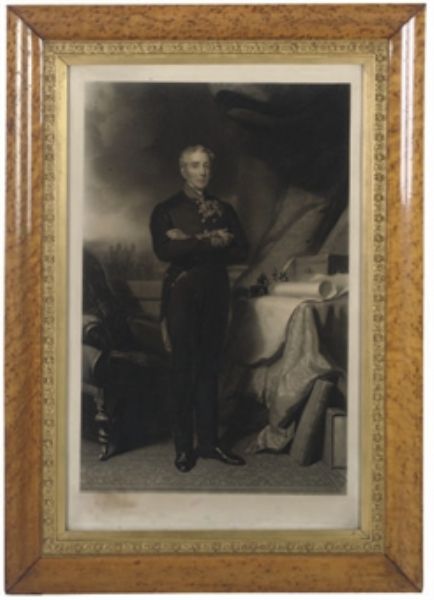 | Portrait of the Duke of Wellington (1769-1852), full-length, in an interior, a map of Dover Harbour to his left | |