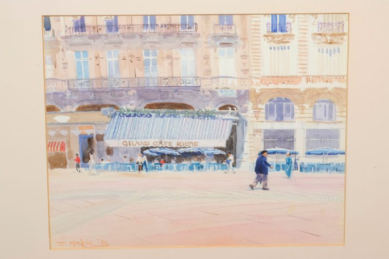 Continental cafe scene with figures seated at the Grand Cafe Riche