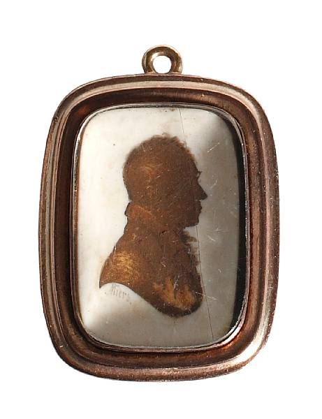 A silhouette of a Gentleman, bust-length, profile to the right, wearing coat, stock and cravat (cracked).