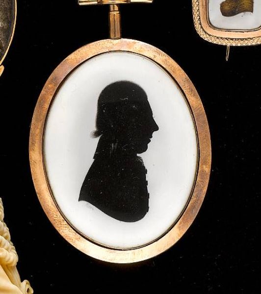 A silhouette of a Gentleman, profile to the right.