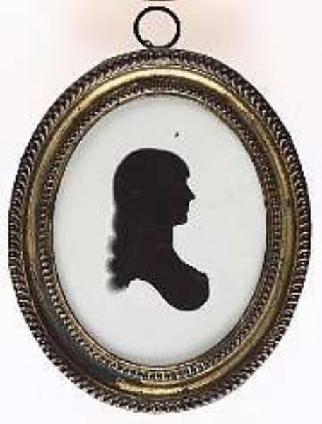 | Two silhouettes of young girls, both profile to the right, wearing dresses, their hair worn long | |