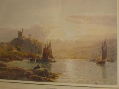 Harbour Scene with Fishing Boats, Figure on Rocks in the Foreground
