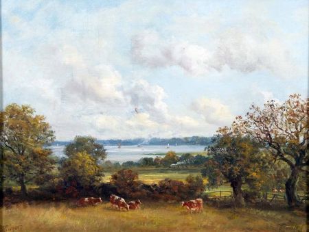 | East Anglian Landscape with Cattle Grazing to Foreground, Estuary to Distance | |