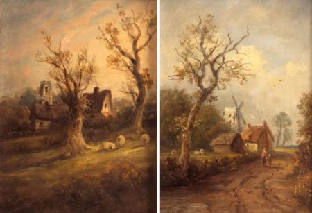 | Figures in a Country Lane and Sheep Grazing in a Landscape | |