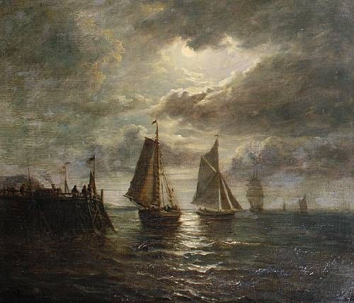 Moonlit shipping scene