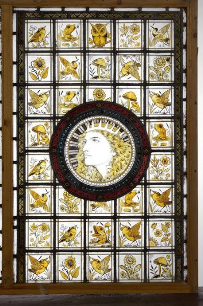 FOUR STAINED, PAINTED AND LEADED GLASS PANELS