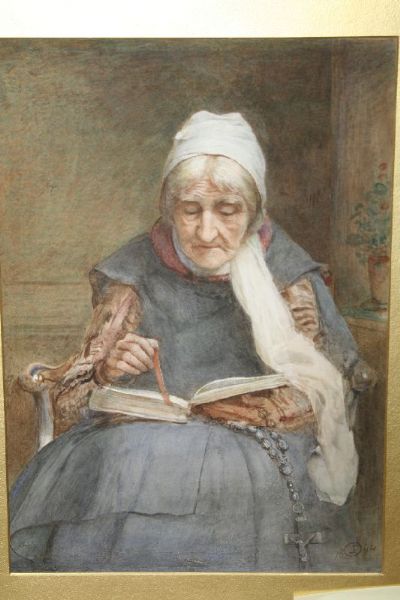 Portrait of elderly woman reading a book