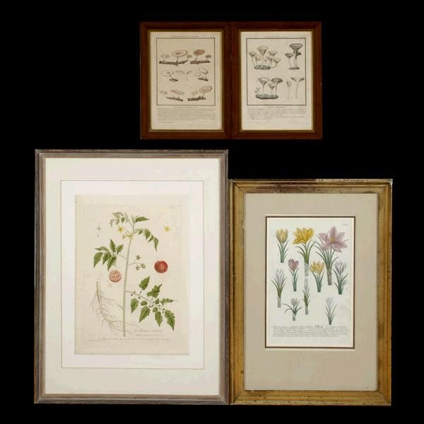 Four hand colored botanical engravings