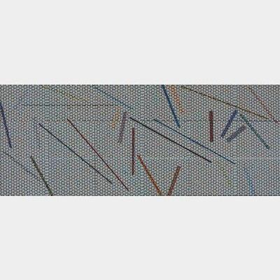''Mondrian Linear Series: B: Vert: #2''- silkscreen on canvas, 1976, signed and dated on back of canvas. 90 x 36'' | |