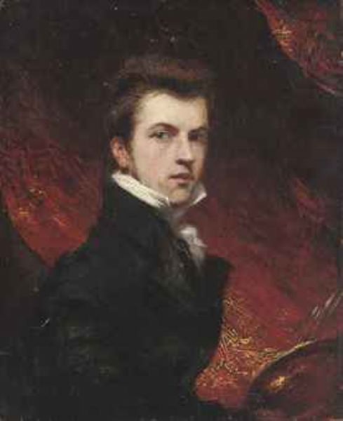 | Portrait of the artist, bust-length, in a black coat, holding a palette and brushes | |