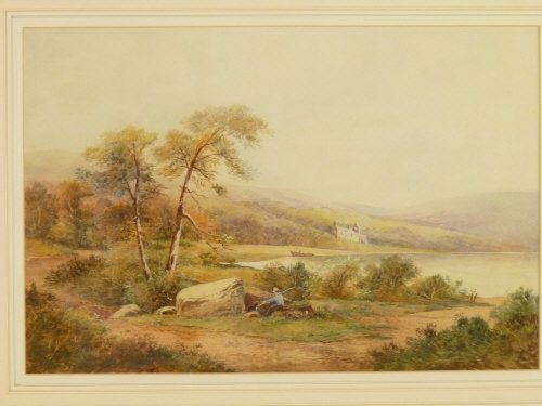 A RIVERSIDE MILL; A LOCH SCENE WITH A FISHERMAN IN THE FOREGROUND