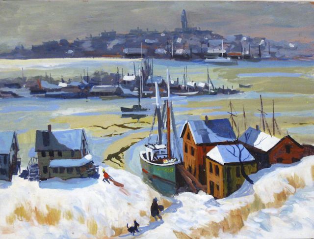 Winter harbor scene