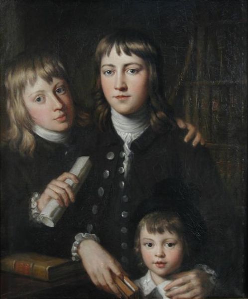 | Portrait of three Anstey brothers, presumably Christopher, John and probably Arthur, in a Library, all standing half-length | |