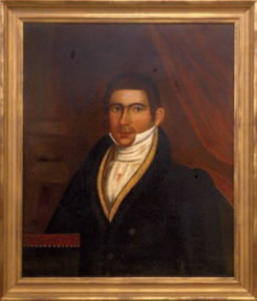 PORTRAIT OF A MAN IN BLACK WAISTCOAT WITH GOLD TRIM.