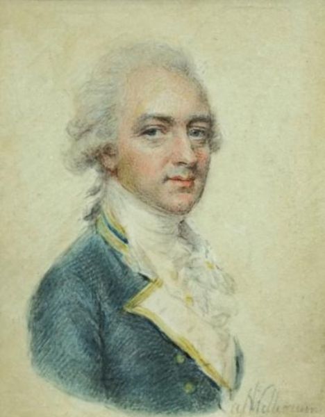 | Miniature portrait of Captain John Williamson - head and shoulders, with powdered hair and wearing a pale blue coat with gold fr | |