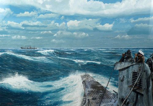 A SUBMARINE OBSERVING A MERCHANT VESSEL