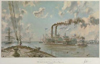 | The Robert E. Lee leaving the crescent city, 1880; The Robert E. Lee arriving at the wharfboat Natchez in "Under the Hill" in 18 | |