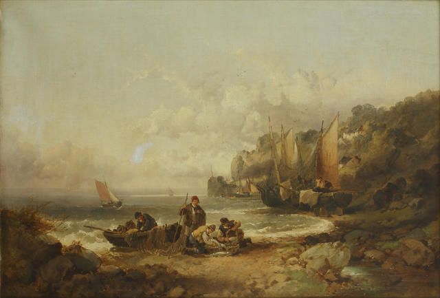 Fisherfolk on the shore