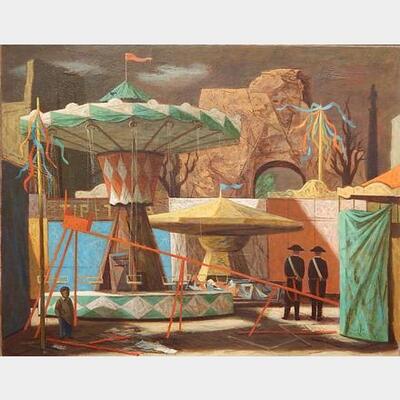 ''Carnival''- oil on canvas, 1951, signed J. Teyral 51 upper right, very good condition. 29 x 37'' Illustrated: 'American Art Review'- ''The Politics of Power in the Cleveland's Art World'', March- Ap;ril 2004, pg. 140 | |